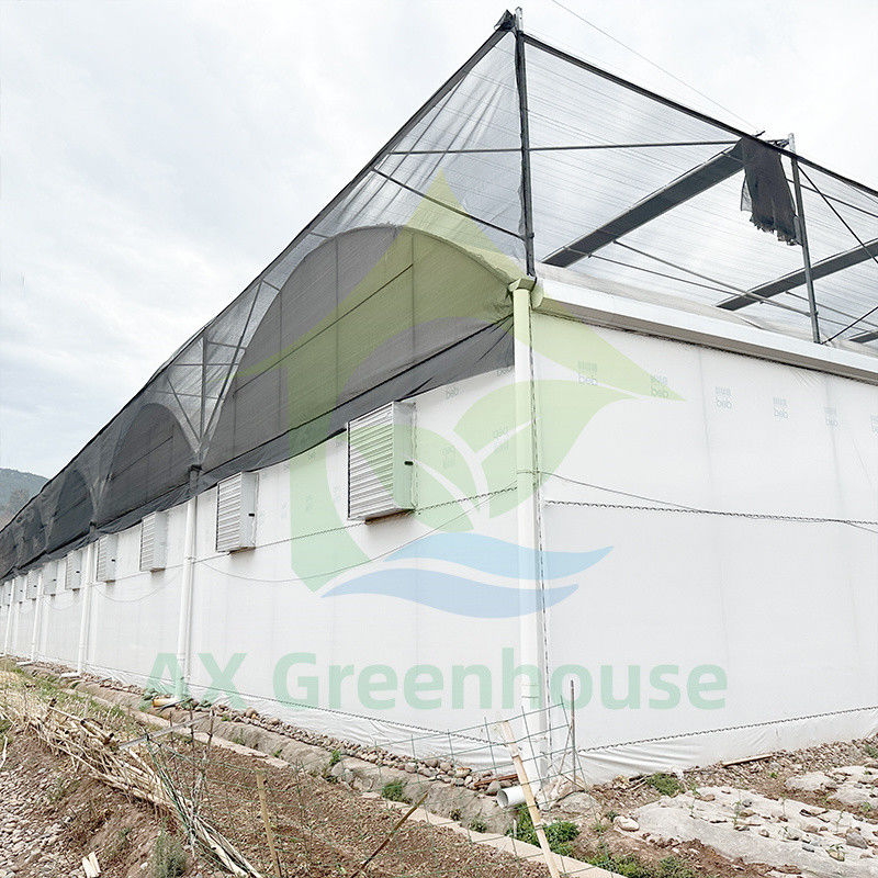 ग्रीनहाउस प्लास्टिक की फिल्म से ढका हुआ है, और दोनों तरफ वेंटिलेशन खिड़कियां हैं। लागत सस्ती और निर्माण करना आसान है। यह कम लागत वाले उत्पादक के लिए पहली पसंद है।